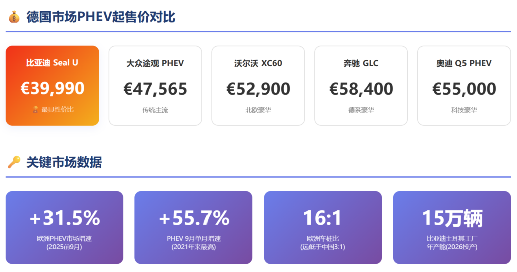 在车桩比仍高达 16:1(中国约 3:1)、长途补能焦虑尚未解除的现实条件下,PHEV 才是欧洲消费者真正愿意掏钱的现阶段的方案。