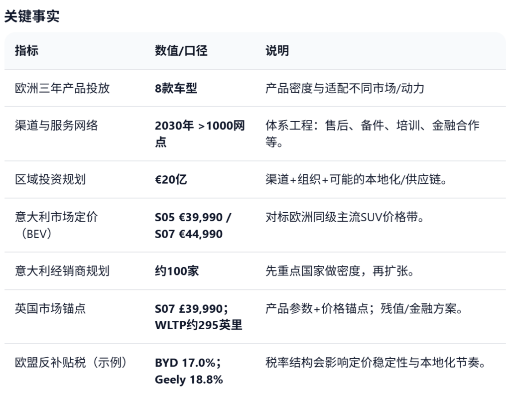 适合承接更宽的用户面,强调空间、实用、可靠与性价比。对欧洲而言,这条线是否成立,往往取决于:定价体系 + 售后可得性 + 残值预期。