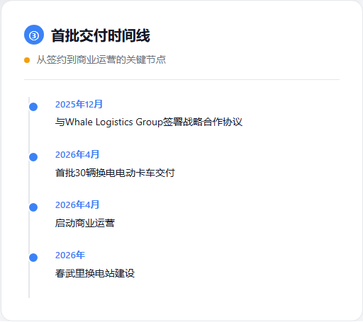 对物流行业而言,这种补能模式把电动卡车从”充电停机”拉回到”燃油车级别”的运营连续性。Whale Logistics Group作为泰国领先物流企业,在Laem Chabang港口和东部经济走廊运营,其选择换电模式瞄准的正是时间成本与电动化的平衡。3分钟换电对于港口物流、高频短途货运等场景,停机时间的直接减少就是运营效率的直接增加。