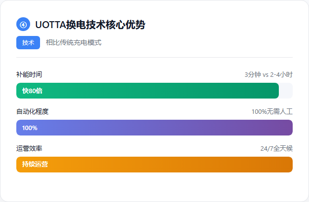 商用车电动化的核心矛盾在于运营时间与补能效率。U Power的UOTTA全自动换电技术已在泰国普吉岛验证,2025年7月东南亚首个智能换电站投入运营,换电过程3分钟完成,24/7全天候服务。