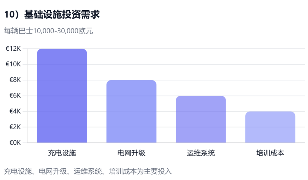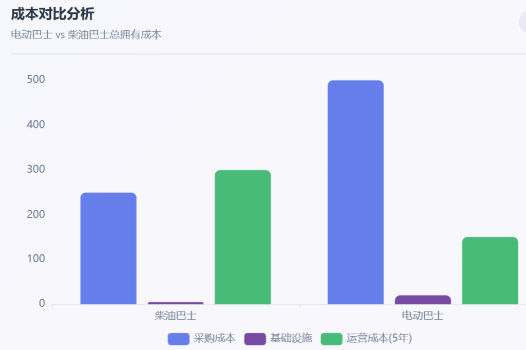 电动客车的采购成本虽然高于柴油客车(约50万欧元vs 25万欧元),但在12年的生命周期中,电力成本(每公里约0.8欧元)远低于柴油成本(每公里约1.2欧元)。