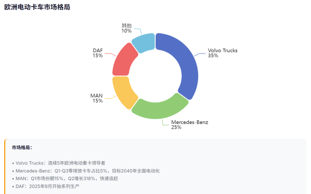 MAN Truck & Bus 2025年交付了620辆电动卡车,这个数字放在全年101600辆总销量中占比不到1%,但同比增长达到318%(Q2数据)。MAN商用车电动化正在进入从通用产品竞争转向场景化定制竞争。