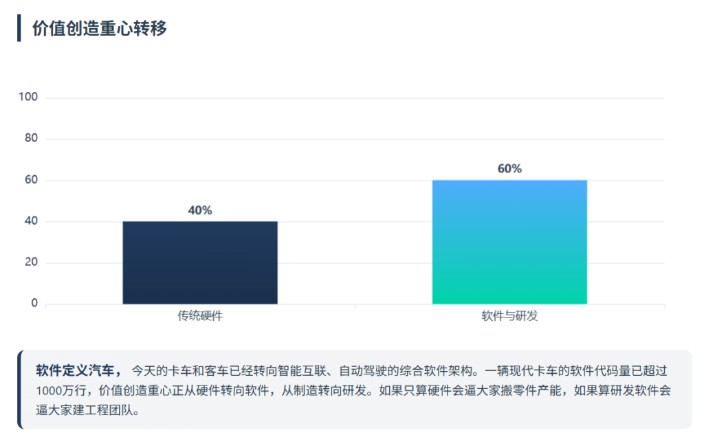 ACEA的第二个核心诉求,是欧盟境内的研发活动和软件开发应该在LCR框架中得到认可和奖励。现在的卡车和客车已经不再仅仅是硬件。驾驶室、底盘、动力总成、电池这些传统部件正在让位于智能互联、自动驾驶的综合软件架构。一辆现代卡车的软件代码量已经超过1000万行,这个数字还在增长。