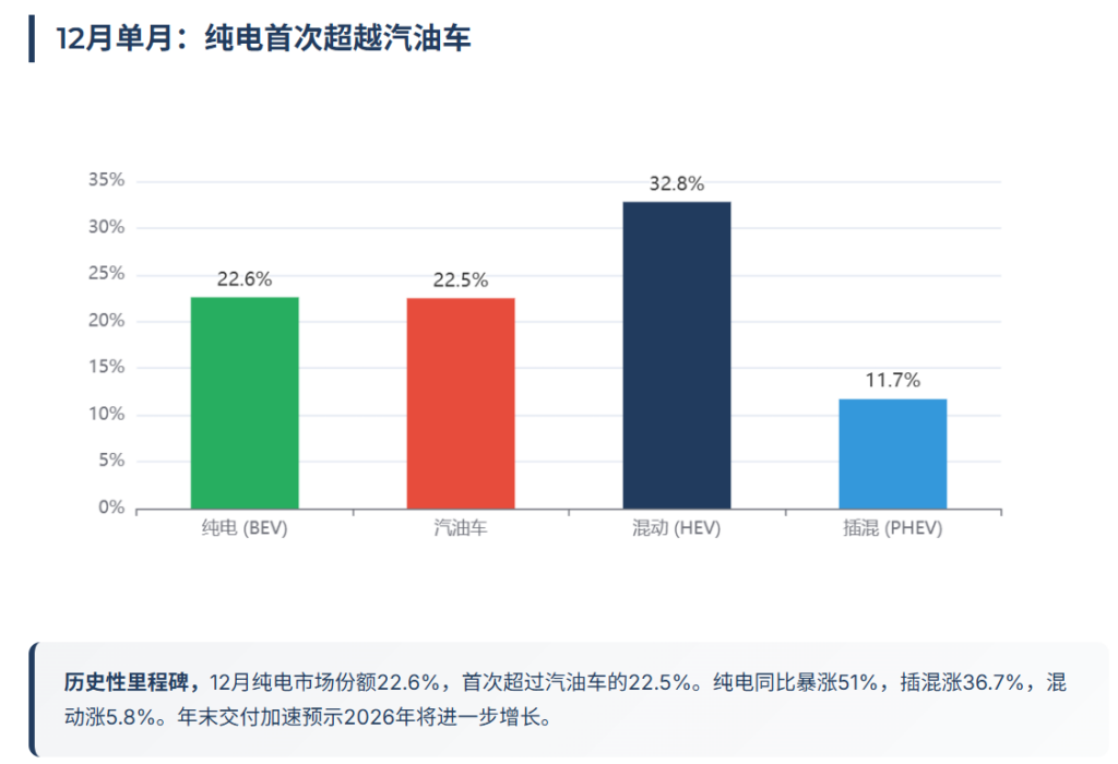 纯电17.4%:12月历史性超越燃油车