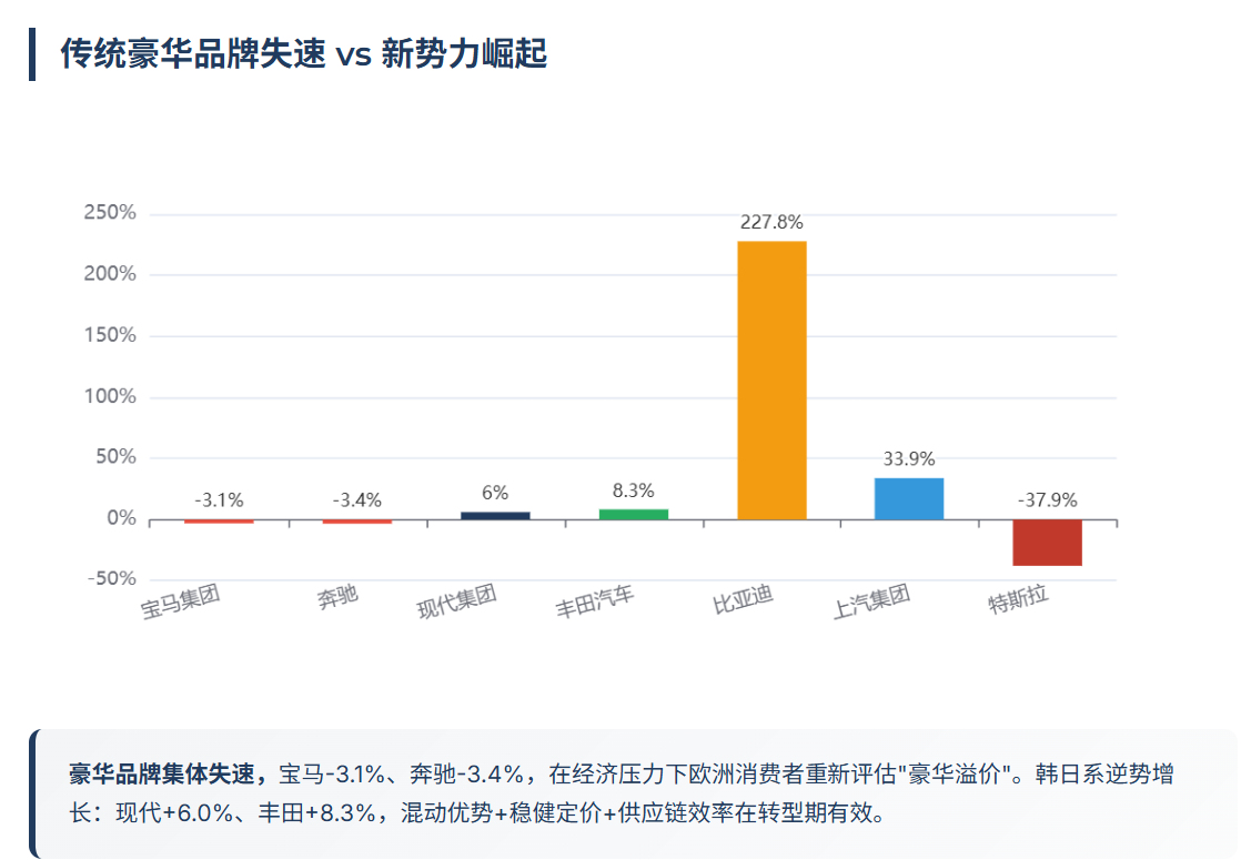 从”品牌溢价主导”转向”产品力+价格体系+渠道运营能力”的均衡较量。传统品牌的高溢价时代正在结束,中国品牌通过价格优势和电动化技术积累正在快速切入市场。2025年只是开始,2026年这种格局重塑将更加剧烈。