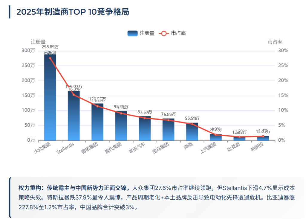 从制造商格局看,欧洲汽车市场正在经历一场前所未有的权力重构。